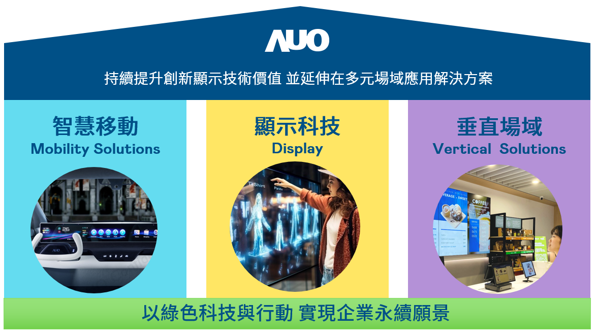 我們持續推動「雙軸轉型」,在精進顯示技術附加價值(Go Premium),與深化垂直市場應用(Go Vertical)的策略下,對應yd12399云顶集团的優勢競爭力與趨勢,我們奠定顯示技術智慧移動垂直場域三大永續營運支柱,在顯示技術領域的根基之上,延伸布局多元場域應用解決方案。將先進顯示科技助力智慧移動及垂直場域發展,並以綠色科技與行動為實踐,在轉型之路上貫徹永續經營之願景。